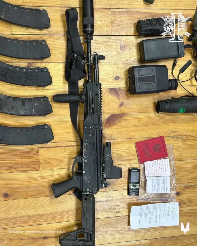 De asemenea, operatorii de pe pozițiile inamice au descoperit și capturat: echipament de protecție personală și echipament militar al ocupanților, un telemetru DL-5, o lunetă cu termoviziune „1PN139-1”, o pușcă de asalt AK-12 cu o lunetă „1P87”, însemnări de comunicare care pot conţine date despre mişcările şi planurile inamicului. În plus, au fost găsite documente rusești.